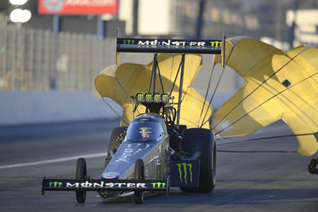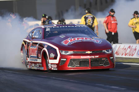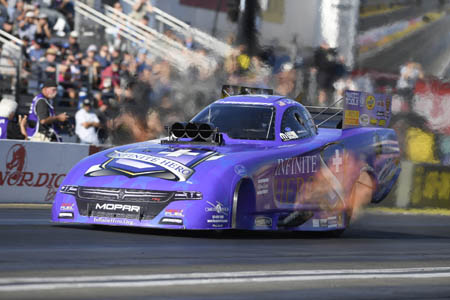 Beckman ran a 3.835 pass at 334.98 in his Infinite Hero Foundation Dodge Charger R/T Funny Car for his second No. 1 of the season and 23rd of his career. "This is a track that doesn't get run on very often, so it's been a different animal this time around but we ran low E.T. in two sessions which was awesome," Beckman said. "I like our chances, but it certainly hasn't been smooth sailing all weekend so we have to make educated and great decisions tomorrow to get a win." Beckman will see Jeff Arend in the first round of eliminations. Qualified in second is Tim Wilkerson with a 3.863 pass at 334.98 from the final qualifying round. He'll race points leader Robert Hight in the first round. Courtney Force enters race day in the third position.
