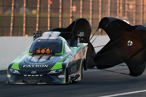 starting line. She powered her Tequila Patrón Toyota Camry down the track in 3.932-seconds