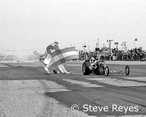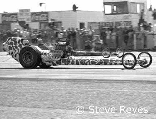left a lot to be desired. Yes, it was a challenge for any top fuel car to stop safely but they did. The track always had some great altereds and surprise gas coupes from Los Angeles to add to the mix of racers.