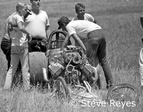 This one was all pavement though. Kingdon had a pretty good bite, just look at Roy Dunn and his AA/FD. Take notice of the starting system which was a kind of mini-tree built on plumber's pipe. The shut off area seemed like ten miles from the starting line. If you couldn't stop here, then you were a very bad race car driver.