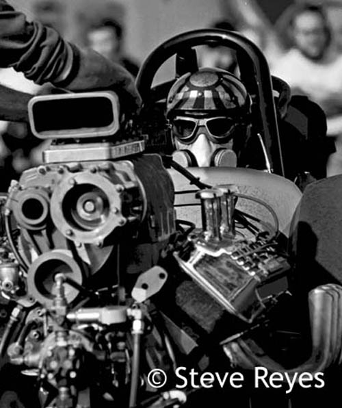 No one can say the early top fuel competitors in NorCal were not diversified. Heck two of the best in the top fuel class were Japanese-American Dave Uyehara and Mexican-American Frank Martinez or as both were known in Northern California, "The World's Oldest Living Kamikaze Pilot" and "The World's Fastest Mexican." Uyehara not only drove but became a very talented race car chassis builder and to this day is a respected name in drag racing circles. Martinez and Uyehara raced a junior fuel dragster The Hustler Jr. together in 1965-66. After their stint together, Uyehara went off to drive in top gas for Dick Oswald and Martinez found himself at the controls of the Hay, Haslom & Walsh The Wailer AA/FD in 1967. Both did well in local top fuel events with Uyehara driving in both top gas and in top fuel. Frank Martinez fielded his own top fuel car for a couple of years but with no sponsor, times became tough for Frank. Martinez went as far as to build his own Camaro funny car in late 1969; but, again, with no sponsor, his funny car dreams faded. Having three small daughters to support Martinez gave up drag racing and concentrated on his incredible welding skills to make a living. Enjoy the photos below of these two racers as they made their mark in drag racing all those years ago and stay tuned for photos of The Wailer in another segment. If you wish to purchase prints of the photos below or any others, they may be obtained by contacting us at breyes@reyesontour.com. Other photos for purchase may be viewed by following the links at www.reyesontour.com.
