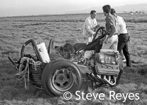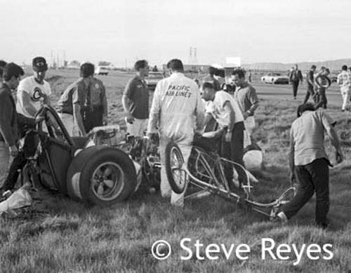 Rich Zoucha, in The Wailer, received an oil bath at the finish line and was unable to see; he ran over the front end of the Jorgenson and Martinez AA/FD. The ensuing crash destroyed both cars but both drivers walked away. The Wailer was rebuilt but the Jorgenson and Martinez AA/FD was not rebuilt. Frank Martinez returned with his own AA/FD in the latter part of 1969.