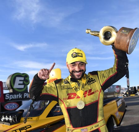Ron Capps (165 points back) and Tim Wilkerson (186 points back) are still mathematically alive, but the championship will likely come down to Todd or Hight. Todd and his team, led by crew chief Jon Oberhofer and co-crew chief Todd Smith, have been on point since winning Indy, posting an incredible 16-3 record in the playoffs. With that in mind, Todd hopes to simply continue this strong run in Pomona, hopeful he will end the weekend with his first world championship. "If you ask me, you don't change a thing," said Todd, who has five wins in 2018. "I'm not going to change the way I drive and I don't think that Jon O. or Todd are going to change the way they are running the car. We just need to keep making consistent runs. Step one is getting qualified there in Pomona and try to put it in the top half. Then we take it one round at a time. It's not over yet. We still have a lot of work to do in Pomona. We just need to keep after it and not let up." On the strength of five straight wins in the Countdown to the Championship, Steve Torrence claimed the Top Fuel world title in Vegas, and he'll look to sweep the playoffs in Pomona.