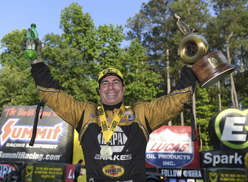 Capps beat Jim Campbell, Robert Hight and teammate Tommy Johnson Jr. to reach the final round, earning his first career win at Richmond Motorsports Park. "Just go up there and not make a mistake was my mindset today," Capps said. "Tobler told me in the trailer prior to the final round, 'I don't know why it smoked the tires all day. Everybody has had problems and we're just going to put it like we did first round when it went 3.99.' I rolled it in there and obviously it went a bit slower but that's what he went up there to do. Vintage Rahn Tobler." Todd beat Bob Tasca III, teammate Shawn Langdon and Jonnie Lindberg to reach the finals.