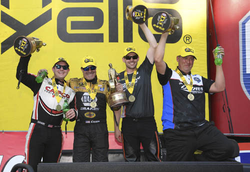 Ron Capps (Funny Car), Bo Butner (Pro Stock) and Andrew Hines (Pro Stock Motorcycle) were also winners in their respective categories at the eighth of 24 events during the 2019 NHRA Mello Yello Drag Racing Series season.