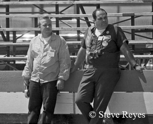 The goodbyes are getting harder and harder to write. Mike was a very influential part of my early career and came into my life when I had just turned twenty years old. Being a struggling young photographer, those weren't the best years of my career. At the time, Mike was a twenty-eight-year-old father and businessman in the Newark/Fremont area of Northern California. He and his then brother-in-law owned and ran a small topless beer bar named the Booby Hatch in Newark, California. This place was located about three blocks from my dumpy apartment. Probably the only reason I met Mike was that his little beer bar sponsored a race car that raced at Fremont every weekend. Having shot photos of the car, I headed over to the bar with the hopes of selling a few prints so I could pay bills and eat. I was still under age to get into the bar, but my goal was to sell photos. At, the door, I was met by a rather large smiling man, Mike. I asked to see the owner so I could show my photos and maybe I could eat that night. Mike introduced himself and then called his brother-in-law over and introduced him. I whipped out my photos and both men smiled. This was the first time they had seen the car in action. Yes, they purchased the photos and Mike was very interested in seeing the car run at the races. The next weekend we both attended the races at Fremont. I took him out to the starting line for that up close and personal feel of drag racing and Mike was hooked. In the next few months, he and I became fast friends. At first, he wanted to shoot movies of drag racing. Then in 1969, Mike decided he wanted to learn still photography and the inter-workings of film processing and printing photographs. I was more then happy to teach my pal the basics of photography. Mike was an ex-Marine and he did nothing half-assed. It showed with his careful listening and learning. He stopped using my back-up 35mm and purchased his own shiny new Nikon motor drive. I pointed him in the right direction and away he went to rule the world. In 1970, Mike helped me move to the Los Angeles area to pursue my career in Southern California. He returned to the Bay area and became a fixture at Fremont. Heck, he not only shot photos there but also helped clean-up the track and raced his Mopar. That is being "all in." Our paths crossed a lot in the early 1970s when I would return to Fremont for a large event or Mike would venture to Southern California for a large NHRA event. Whenever I could, I would try to get Mike a photo pass for any SoCal event. He was always good natured about getting a pass. If he couldn't get one, I advised him where to sit in the spectator stands to get the action on film. How he maintained his home life, regular job, bar business and photo career still boggles my mind. I don't think he ever slept. I know back when I hung out at the bar, he and I would go have breakfast at 2:30 am and then a little after 3:30 am we would be on his driveway shooting hoops. Then I would go home and at 8:00 am he would be at work. As I toured the USA for Argus Publishers in the mid-1970s, I lost contact with Mike. I was told he quit shooting drag racing after 1977. I picked up bits and pieces on Mike as he relocated to Weaverville, California. He had gotten divorced and started to photograph nature and scenics that he sold to tourists visiting California's Gold Country. During this time, he met his second wife, Barbara. Mike and Barbara were very involved with the Red Cross and last June would have been their 35th wedding anniversary. My last contact with Mike was a few years ago by email when out of the blue he sent me a message. It was like we had only been apart a couple of days not years. He thanked me for teaching him photography and talked about how well he had done with his nature photos. I got his address and sent him prints of him during our good old days at Fremont. The last I heard from him, he thanked me for the prints and said his kids would love them. Our mutual friend, Jamie Jackson, alerted me to Mike's passing on April 18th. He would have been 78 on September 4th. All I can say was that he was a great guy and I was very lucky to have him in my life, Semper Fi! If you wish to purchase prints of the photos below or any others, they may be obtained by contacting us at breyes@reyesontour.com. Other photos for purchase may be viewed by following the links at www.reyesontour.com.