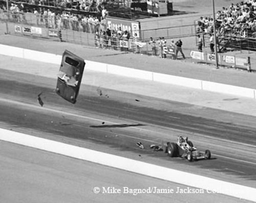 about photographing race cars. In 1969, Mike was making a new friend in Jamie Jackson. Their friendship grew strong in the 1970s and when Mike quit shooting drag racing, he gave Jamie his photo archives.