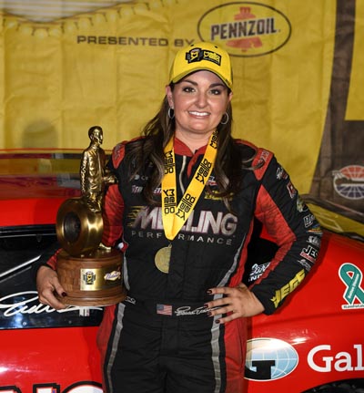 She takes a 92-point lead over Elite Motorsports teammate Jeg Coughlin Jr. into the final race of the Mello Yello Countdown to the Championship playoffs, taking full advantage of getting hot at the perfect time. She's won two playoff races in her Melling Performance/Elite Motorsports Chevrolet Camaro, earning the 150th win for females in NHRA Mello Yello Drag Racing Series history along the way, meaning a third postseason victory would be the perfect capper to a third world title. "Momentum is huge in this sport," Enders said. "At the beginning of the year, we had some pretty deep valleys and we had to claw our way out of them. (Team owner) Richard Freeman has put us in position to do the best we can. Peaking at the right time is crucial. We're going to go out to Pomona to win the race. We're going to dig deep and I'm excited about the opportunity." Steve Torrence (Top Fuel), J.R. Todd (Funny Car), Tanner Gray (Pro Stock) and Matt Smith (Pro Stock Motorcycle) were last year's winners of the race that will be televised on FOX Sports 1 (FS1), including live finals coverage starting at 4:00 p.m. (ET) on Sunday, Nov. 17. It is the final race in the Countdown to the Championship playoffs the last of 18 races in the 2019 Pro Stock season. Enders has finished the season in style, but the work isn't done yet.