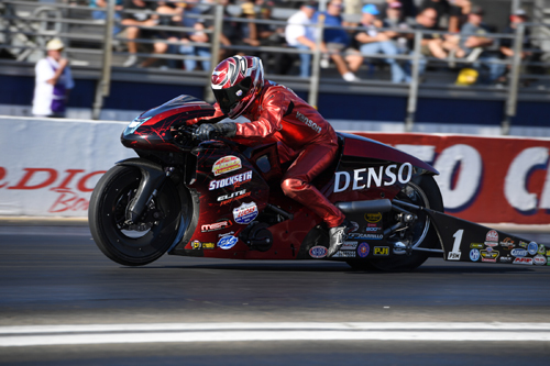 "I feel good about tomorrow," Smith said. "We were basically low of every round but one and we've been good all weekend long. I'm just going out there to run my race and try to turn on a win light each round. If I get lucky enough and turn four of them on, and Andrew loses in the first round then we become the champion. I'm really just going to go do my job and see what happens." Karen Stoffer qualified second with a 6.834 at 195.00, and Jerry Savoie, who trails Hines by 116 points, will start from third after going 6.837 at 193.35. Hines can clinch his sixth world championship by simply winning in the first round tomorrow. He'll meet Jianna Salinas to open eliminations after qualifying fourth with a 6.845 at 196.22. Eliminations at the Auto Club NHRA Finals begin at 11:00 a.m. PT on Sunday.