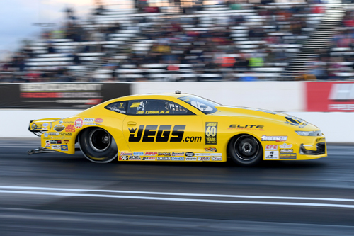 Brittany Force (Top Fuel) and Matt Hagan (Funny Car) also raced to the No. 1 qualifying spot in their respective classes after a rain delayed day in Phoenix, with the fourth qualifying session being cancelled due to weather. The trio were also No. 1 qualifiers at the season opener in Pomona. Coughlin has dominated the season so far, having taken home the No. 1 qualifying position and event win in Pomona two weeks ago. Saturday qualifying in Phoenix was no different after Coughlin rocketed to the top with a pass of 6.536-seconds at 208.52 mph. The five-time Pro Stock world champion is currently embarking on his "Breaking Barriers Tour," announcing that he will be retiring at the conclusion of the 2020 season. He will race rookie Marty Robertson in the opening round of eliminations on Sunday. "I think coming into the weekend here we were obviously riding right off of back-to-back Pomona wins," said Coughlin. "Coming into this weekend as the defending champion kind of gave us another little feather in our cap. The team has been aggressive. We've been very fortunate our car has been performing really, really well. From behind the wheel, I can tell you we have quite a rocket. It feels amazing. I think that gives us a lot of confidence going into race day." Coughlin's teammate Erica Enders sits in the second position with a 6.554-second pass at 208.33, with Aaron Stanfield close behind in third after going 6.567-seconds at 207.69.