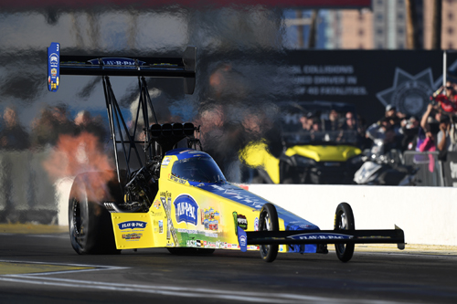 "We were trying to run a little bit quicker than that," Force said. "That was barely around Torrence, but we stole the No. 1 spot. We got our second (green No. 1 qualifier) hat of the season. Really what our plan is, is to go out and win on race day. We've been consistent all weekend long with the three runs that we've had, but we need to do the same thing all day long tomorrow. It's consistency. We made some mistakes carrying it over on race day a couple of weeks ago in Pomona. We're ready for race day. We're ready to go out and hopefully win the thing." Reigning Top Fuel champion Torrence sits in a close second after a run of 3.671-seconds at 326.48. Leah Pruett rounds out the top three with a pass of 3.680-seconds at 328.06.