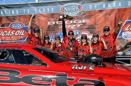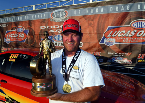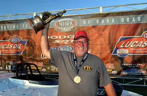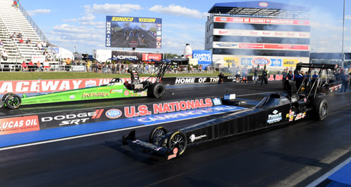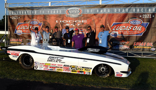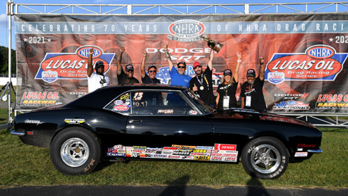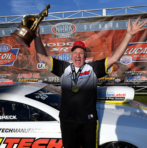 BROWNSBURG, Ind. -- Jackie Fricke, Doug Gordon, Jim Greenheck, Matt Morris, Matt Lisa, Nick Isenhower, Edmond Richardson, Larry Paden, Jimmy Lewis and Zach Sackman win at the 67th annual Dodge//SRT NHRA U.S. Nationals.