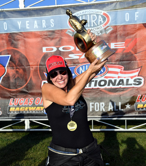 Top Alcohol Dragster -- Jackie Fricke, 5.164, 278.98 defeated Matthew Cummings, 5.396, 254.76.