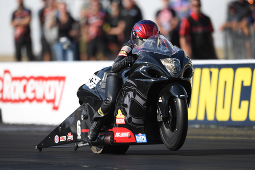 "It was a great start to the weekend and I'm excited about it because it's the same motorcycle I've had all year long," Sampey said. "That bike was capable of doing that from Gainesville to here, it was just me not driving it well. I'm starting to get the hang of it and I'm starting to get more comfortable on the bike, and it's showing. My teammate, Eddie (Krawiec), did so well at Indy, qualifying No. 1 and winning the race, and I'd like to follow in his footsteps this weekend." Points leader and defending world champ Matt Smith jumped to second in the final qualifying session with a run of 6.750 at 201.91. He set the speed record earlier in the day at 202.09. Eddie Krawiec got bumped to third with his run of 6.763 at 201.67 from Friday. Eliminations begin at 11 a.m. on Sunday at the Mopar Express Lane NHRA Nationals presented by Pennzoil at Maple Grove Raceway.