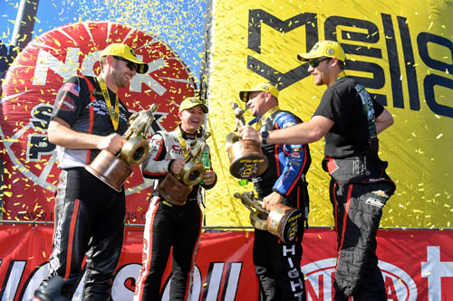 Steve Torrence (Top Fuel), Robert Hight (Funny Car), Deric Kramer (Pro Stock) and Andrew Hines (Pro