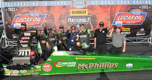 Top Alcohol Dragster -- Matthew Cummings, 5.320, 277.32 defeated Karen Stalba, 10.667, 95.02.