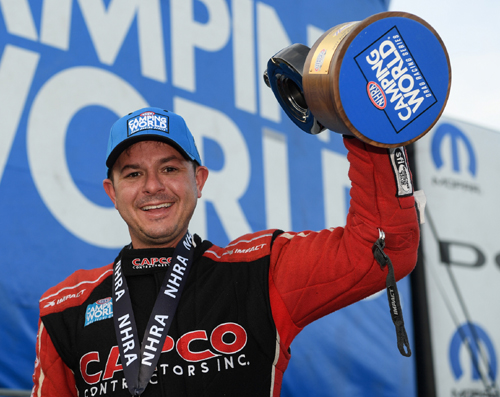 "It's truly unbelievable," Torrence said. "It was just a great weekend for us and we just had to do our job. They told me to go and do my job and when they stand behind you like that, it's truly the definition of a team. We'll go to Pomona and see if we can get it done. I've really tried to focus on doing my job and not letting things get into my head. You hear all the stuff and you know what's going on, but you have to tune that out. At the end of the day, we're racing ourselves, so you have to be comfortable in that. Today, I was able to do my job and it's a huge confidence-booster going into Pomona." Salinas reached his second straight final round and ninth in his career thanks to victories against Doug Kalitta, Billy Torrence and Brittany Force in a thrilling semifinal round. Salinas moved to third in points, while Force stayed in second heading to the finale in Pomona.