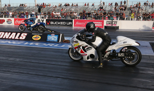 Garreth Sheppeard won with 2012 Suzuki Hayabusa. It is street bike that they modified to make it a better suited platform for bracket racing. He started racing when he was eight years old in a Junior dragster during that time he had quite a few wins and one track championship at Kil Kare raceway in Ohio. At seventeen he got his chance to ride a dragbike, thanks to big Brad Shellhass. Since then he has won three track championships, one overall championship, and three Wally trophies at National Trails, as well as a few big checks from the all bike events they attend.