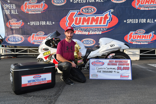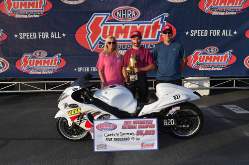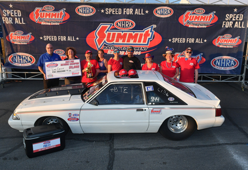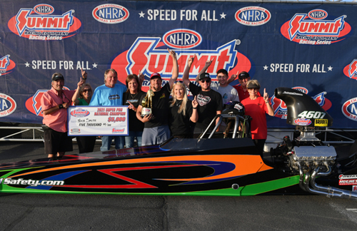 Smith celebrates his first Summit ET Championship in his first appearance. He would like to thank or recognize his mom and dad, girlfriend Christina, their dog Brooks, Ardmore Dragway, Buddy Wood, Boo Honeycutt, PRO1 Saftey and BRODIX.