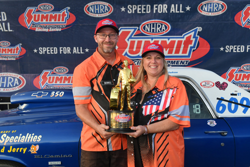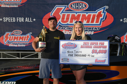 Nick Smith and Christina from Altus, Okla. He started racing in Junior Dragsters when eight years old. He has won 2017 $25k Showdowns main event. He has been to multiple $5k, $10k finals, a $15k and $20k runner up.
