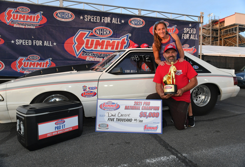 Dan Caissie celebrates his first Summit ET Championship in his second appearance, he was here in 2015 in Sportsman. He would like to thank or recognize Megan Lincoln and her kids they support me 100%. Also my son Dan Jr. and my whole family, Justin Bruso, Steve Gregoire, Nelson Belot and Jim Blake.