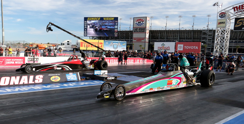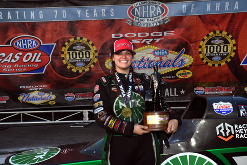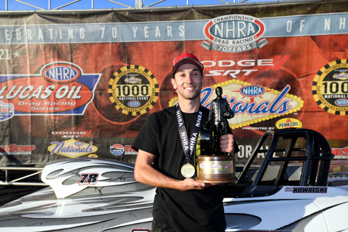LAS VEGAS -- Rachel Meyer, Sean Bellemeur, Bruno Massel, Chris Hall, Justin Lamb, Steve Williams, Evan Kowalski and Nick Alejandre won at the 21st Annual Dodge//SRT NHRA Nationals presented by Pennzoil at The Strip at Las Vegas Motor Speedway.