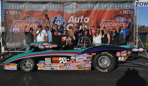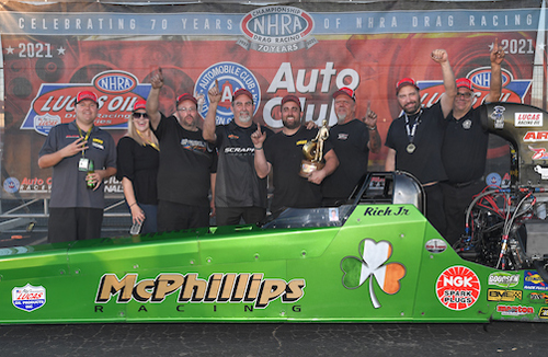 Top Alcohol Dragster -- Rich McPhillips Jr., 5.138, 278.81 defeated Julie Nataas, 5.173, 276.58.