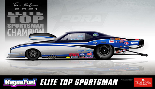 "It's one thing just to qualify for fields like we have in Elite Top Sportsman," Molnar said. "It's phenomenal how fast the cars are. They're basically Pro Nitrous cars." Molnar celebrated the championship with his wife, Rikki, and his father, Dick Molnar, who both serve as his two-person crew at the races. "My dad and I have raced together for a very long time," Molnar said. "We've won a class championship, but nothing of this magnitude. I was glad my dad was there to see it. It was as happy for him as it was for me. Yeah, it was great to win it, but it was great to do it for him. He turned 80 this year and he goes to all the PDRA races. He just lives and breathes drag racing, and it was really special to get it for him." Molnar also credited engine builder and Pro Nitrous driver Billy Albert, as well as NHRA Pro Mod star and past Pro Nitrous world champion "Tricky" Rickie Smith for helping Molnar get his car running consistently in the 3.80-second range. "We had actually struggled with the car in previous years," said Molnar, who also thanked Jerry Bickel Race Cars, Rossler Transmissions, Neal Chance Racing Converters, and Graham Western at EFI Technology. "I could go fast on occasion and I could qualify for almost every race, then first or second round it'd usually shake the tires. Working with Rickie Smith and Chad Hester and Billy Albert, they really got me dialed in and got the car dialed in. The thing has been on a string for the last two years. Last year, a whole bunch of red lights kept me from going many rounds. But this year I tried to stay away from my own red lights and the car was there. You could count on it every run. I aborted one run all season long." It was a standout season for both Tim and Rikki, as Rikki posted a runner-up finish in Lucas Oil Top Dragster and scored her first NHRA Wally at Virginia Motorsports Park's Lucas Oil Series divisional race. "My wife is a big part of this," Molnar said. "It's a very small crew: me, my dad and my wife. We field the two cars and I couldn't do it without her." The PDRA will celebrate Molnar and its other 2021 world champions at the annual PDRA Awards Banquet on Friday, Dec. 10 at the Indianapolis Marriott Downtown.