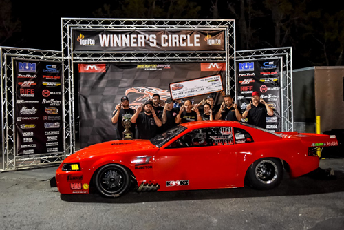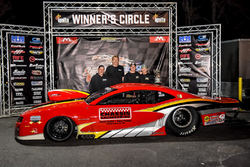 Salemi paired up with two-time and defending PDRA Pro Nitrous world champion Jim Halsey in the opening round, using a 3.667 to knock out Halsey's 3.704. Another heavy hitter, PDRA Pro Boost championship runner-up and No. 1 qualifier Daniel Pharris, was waiting for Salemi in the second round. Salemi left the starting line first and held on with a 3.693 at 205.66 to finish ahead of Pharris and his 3.722. "Everybody here had a chance to win," Salemi said. "There was not one person in that 32-car field that didn't have a shot to win. Every round was the same as the one before. Daniel Pharris, when I had him second round, I got a little bit lucky on that one. He broke and that was maybe my luck turning around. We're all just as good as one another. If you let somebody's success in the past get in your head, I think you've lost already." Salemi combined another consistent, quick reaction time and a 3.686 at 205.13 to beat Kurt Steding's 3.649 on a holeshot in the third round. "Those [holeshot wins] are always the best," Salemi said. "Honestly, they make your team feel confident about you also. I've had some issues in this car with cutting lights. I think we've got it figured out. There's a few things I'd like to work on. But I know Kurt can be really good on the tree. He's beaten me on a holeshot before. I knew that was definitely one of the rounds that I needed to be up on the wheel." Confidence continued to build in the Salemi camp going into the semifinals, where Salemi stepped up to a 3.664 at 206.54 to knock out Kris Thorne and his 3.947. "You have to be on your game to be able to win a race like this," Salemi said. "Everybody on our team has to be on our game 100 percent or it doesn't work." In the final round, brothers Jon and Jim got even more aggressive on the tuneup. Salemi took advantage of the extra power, running a 3.65 at 206.83 to stop Quartuccio and his 3.692. "We really had a perfect day of racing," said Salemi, who thanked the team's sponsors, the G-Force Race Cars shop guys, and car owner Eddie Whelan. "Our crew worked flawlessly. We were missing Katey [Knight]. We weren't the fastest car on race day, but I did my job when I had to and the crew had my back when I was a little late. It was a perfect day all around." Salemi also shared her appreciation for the Bradenton Motorsports Park staff. "Thank you to Victor [Alvarez], Wade [Rich] and all of the staff at Bradenton for being so welcoming and working their butts off to put on such an awesome, safe race," she added. Quartuccio, who qualified No. 6 in his ProCharger-boosted "Serial Killer" '69 Camaro, consistently improved through eliminations up until the final round. He ran a 3.691 to defeat Robert Abbott in the opening round, a 3.684 over Terry Coyle in the second round, a 3.657 over Todd Tutterow in the third round, and a 3.653 alongside a red-lighting Mike Decker Jr. and his 3.631 in the semifinals.