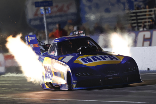 Brittany Force (Top Fuel), Troy Coughlin Jr. (Pro Stock) and Angelle Sampey (Pro Stock Motorcycle) also qualified No. 1 at the 22nd and final event in the 2022 NHRA Camping World Drag Racing Series season and the sixth race in the Countdown to the Championship playoffs. Capps went 3.837-seconds at a track-record speed of 337.33 mph in his 11,000-horsepower NAPA Auto Parts Toyota GR Supra, handing the veteran his sixth No. 1 qualifier of the season and 35th in his career. He enters raceday 57 points - or less than two rounds - behind leader Robert Hight, looking to become the first Funny Car driver to win back-to-back championships in 20 years. Capps will take on Jeff Arend in the opening round, with a possible must-see matchup looming in the semifinals against Hight, who qualified fourth with a 3.849 at 334.48. "This is what I talk about when you get into a race car like this and you wish you could make those big runs at the big moments," Capps said. "I know we can go out and throw down with the best. It's a great feeling, so what a way to end qualifying. I got on the radio, and I was screaming and yelling. It was like going down the road to Disneyland and getting on Space Mountain for the first time as a kid. "It's a different day tomorrow. (But) I'm going to wake up my motorhome here at trackside and I'm going to have a chance of possibly winning a world championship once again." Cruz Pedregon qualified second with a career-best run of 3.840 at 322.58. In fact, Pedregon made the four quickest runs in his career, all in the 3.84 range. Matt Hagan took third with a 3.844 at 323.58 and will head into raceday 62 points behind Hight.