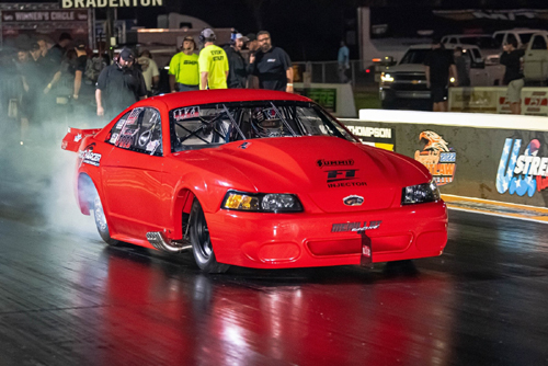 "It was unbelievable," Hubbard said. "I've never been here. I've always wanted to come, it's just such a far trip for us - 16 hours. After I won the [Extreme 275] championship at the Orlando race, we were gonna go straight to Vegas [for the Street Car Supernationals]. We ended up hurting the motor [in Orlando] and we didn't have time to go straight there. We freshened the motor last week and we got here, first pull on a test pass we break the converter and break the transmission. Luckily, Micke and Chance got us fixed up on parts, next-day-aired us some stuff. I get support from so many people. I couldn't do it without these guys. It brought tears to my eyes for sure. It's unbelievable." Hubbard started the day with a 4.191 at 168.35 win over Austin Keen, who couldn't make the call after a crash in qualifying. Another 4.191 at 169.27 followed on a second-round bye. Hubbard then ran a 4.192 at 171.12 in the semis to knock out No. 3 qualifier "Mean" Dean Marinis and his 4.222. LIMITED DRAG RADIAL Larry Salvator ran the table in Limited Drag Radial in his Illinois-based '03 Mustang, qualifying No. 1 and racing to victory. He won first round with a 4.04 at 192.17 before running a trio of 3-second passes, starting with a 3.985 at 193.43 in the second round. He improved to a 3.964 at 193.79 on a bye run in the semifinals. Salvator lowered the boom in the final round, throwing down a 3.947 at 193.85 to defeat Paul Gargus and his 3.949 at 192.60. Along with the win, Salvator's final-round performance gave him low E.T. and top speed of eliminations. ULTRA STREET Shawn Pevlor collected both low qualifier honors and the event win in Ultra Street driving his nitrous-fed '93 Mustang. He lifted to a 9.671 in the first round, then improved to a 4.736 at 119.91 on a second-round bye run. With a .003 reaction time, the Cincinnati, Ohio-based driver won on a holeshot with his 4.501 at 153.75 over Jason Spina's 4.484 in the semis. Pevlor had a strong light in the final round against Eugene Rodriguez, but he also paired it with a weekend-best 4.45 at 153.95 to get the win over Rodriguez and his 4.527. OUTLAW 632 Alan Drinkwater's Outlaw 632 rookie season started off with a win at the PDRA season opener earlier this spring. He bookended the season with another win, his second consecutive victory in his native Florida, when he defeated two-time PDRA Pro 632 world champion Dillon Voss in an all-clutch-equipped final round. Voss went red by .029, while Drinkwater recorded a 4.179 at 170.08 in Kenny Floyd's naturally aspirated '04 Ford Escort. "We really didn't realize how hard it was to win until we got further into the season," said Drinkwater, who won the World Street Nationals in Orlando. "We didn't win another race until we came down here to Florida. It took us a little bit of time to get used to the prep - it's a little different than the PDRA prep, but we've got a handle on it now. To win back-to-back, it's amazing. I can't thank Kenny Floyd enough for giving me the opportunity to drive; Johnny Pluchino for his tuning abilities; and the team, Preston, Mike, and Jay. It's a big team effort. I wish those guys could get more recognition. I just play a small part in the whole deal. It's a blast." Drinkwater had a 4.18-second bracket car through eliminations after qualifying third. He ran a 4.183 at 169.93 in the first round, a 4.183 at 170.64 against Tara Thornton in the second round, and a 4.18 at 169.74 over Daryl Stewart in the semis. Complete results can be found on the Bradenton Motorsports Park Facebook page. The stars of Outlaw Pro Mod and drag radial racing will return to Bradenton Motorsports Park on Jan. 26-29, 2023 for the U.S. Street Nationals presented by M&M Transmission.
