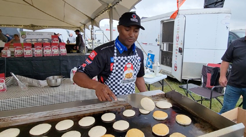 BROWNSBURG, Ind. - With more than 70 wins to his resume, three-time NHRA Top Fuel world champion Antron Brown knows the importance of starting race day with the proper fuel in his belly and the right nutrition to power to the winner's circle. The fan-favorite racer has partnered with Sturdiwheat, the Red Wing, Minn.-based maker of all-natural dry baking mixes, and its Bottomless Breakfast program, it was announced today. "The Bottomless Breakfast pancake promotion is perfect for NHRA Drag Racing and is an awesome Christmas gift for any racer or regular traveler," Brown said. "NHRA is a family sport and so many racers, families, and fans stay at the track in their motorhomes and campers, and what better way to start your morning than with the best pancakes on the market, Sturdiwheat." The Bottomless Breakfast program consists of four annual shipments. The first includes a mobile griddle, four two-pound Sturdiwheat pancake mixes, two 16-ounce syrup bottles, and accessories. The final three batches also include pancake mix, syrup, and additional surprises to easily complete your family hotcake brunch at home or on the go.