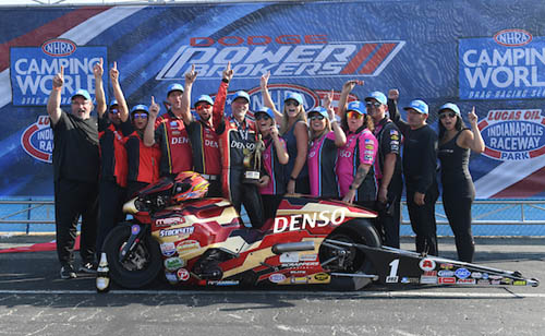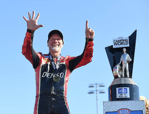 "This Denso bike has been awesome all year. To be the only Pro Stock Motorcycle rider that's won every (NHRA) championship with Camping World so far, it's pretty amazing," Smith said. "People don't realize how much effort you have to put into this class. We work harder in the off-season than we do all year long."