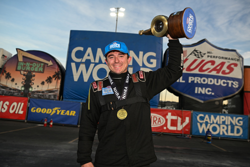 To add to the moment, Green's son, Hunter, also earned the win on Sunday in Top Alcohol Dragster in the Lucas Oil Drag Racing Series. "It's just been an amazing weekend," Green said. "First off, it's been an amazing season. This has been a dream season for us. I couldn't be more proud of my guys. They've really come a long way in the last few years and they've stuck with me. We've been trying all year to get this Wally. We've been close a few times, but it's just been an amazing season. I can't think of a better way that you could top off a season, ending it like this. "But I just can't say enough about our season. It's been so amazing. You could have never drawn it up like this. This season has been a great season, we surprised a lot of people, and to cap it off with a win is awesome."
