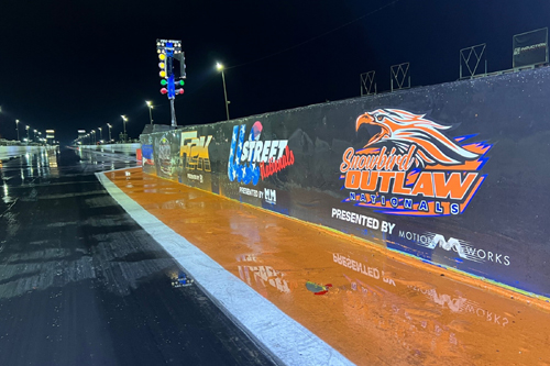 BRADENTON, Fla. - An evening rain shower soaked the Bradenton Motorsports Park racing surface Sunday night, leading race officials to cancel the rest of eliminations at the 52nd Snowbird Outlaw Nationals presented by Motion Raceworks. The heads-up classes made it down to at least the semifinals. The payouts will be split among the remaining racers in competition, and racing for the trophies will take place during qualifying at the U.S. Street Nationals presented by M&M Transmission, Jan. 25-28, at Bradenton. "This is obviously not how we wanted to cap off what's been an incredible Snowbirds," said Victor Alvarez, track owner and race promoter. "We got hit with a heavy rain shower right after finishing the third round of Outlaw Pro Mod. Our race operations team weighed the options and decided it made the most sense to let everyone start packing up and heading home. We're splitting the payouts for all classes. Everyone left in competition will get the opportunity to race for the trophy in a couple months at the U.S. Street Nationals. "We had an incredible fan turnout for our Night of Fire on Saturday," Alvarez added. "The energy was amazing. I'm blessed to host these events with my amazing team and our family of racers and fans." In the headlining $52,000-to-win M&M Transmission Outlaw Pro Mod presented by FuelTech and PJS Racing class, Scott Lang, Melanie Salemi, Lyle Barnett, and Mark Micke raced their way through three rounds of competition to reach the semifinals. Micke set low E.T. of eliminations with his 3.592-second pass at 218.37 MPH in his twin-turbocharged M&M Transmission '69 Camaro in the third round. The Precision Shaft Technologies Pro 275 presented by Pro Line Racing semifinalists are No. 1 qualifier Marcus Birt, Jack Greene, Jason Collins, and Mark Woodruff. Mickey Thompson Tires X275 presented by Precision Turbo & Engine low qualifier Eric LaFerriere made it down to the semifinals along with Mark Meiering, Ryan Milliken, and Charlie Johnson. The semifinalists in Energy Manufacturing Limited Drag Radial presented by Callies are No. 1 qualifier Paul Gargus, Mitch Mika, Huston Dial, and Matt Bell. TBM Brakes Outlaw 632 presented by Rife Sensors raced down to the final round, with Jake Naumann set to face Chris Holdorf in the final. The third round of TRZ Motorsports Ultra Street presented by Summit Racing was set to feature No. 1 qualifier Shawn Pevlor, Stephen Barrett, Camren Massengale, Ray Cox, and James Taal. The Snowbird Outlaw Nationals also included competition in the Florida N/T Racing No-Time Shootout presented by TurboSmart, the Fleece Performance No-Time Truck Shootout presented by NBS Racing and Suncoast Performance, index racing in the 5.50, 6.50, and 7.50 index classes, Jr. Dragsters in the 7.90, 8.90, and 11.90 index classes, and the 4.60 Bike class. Many of the drivers and teams that competed in the Snowbird Outlaw Nationals will be back at Bradenton on Jan. 25-28 for the U.S. Street Nationals presented by M&M Transmission.
