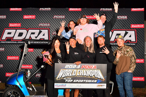 FREDERICKSBURG, Va. - With two wins in the first three races of the 2023 Professional Drag Racers Association (PDRA) season, Donny "Hollywood" Urban looked like an early favorite to win the MagnaFuel Elite Top Sportsman presented by PAR Racing Engines world championship. The 2018 world champion added a runner-up finish and consistent performances through the rest of the season to claim his second series championship. "I don't even know how to put it into words," Urban said in the championship winner's circle. "This one means more than anything. I've won the five-day bracket championship stuff, all the IHRA stuff, but this one means the most. It was a lot of work." After finishing fourth in the 2022 championship standings, Urban started the 2023 season with a semifinal finish at the season opener. He won back-to-back races at the Mid-Atlantic Showdown presented by Classic Graphix at Virginia Motorsports Park and the DeCerbo Construction American Doorslammer Challenge presented by Callies at Summit Motorsports Park. Urban went to the final round again at the Fulton Racing Engines North vs. South Shootout presented by Penske Racing Shocks at Maryland International Raceway, finishing runner-up to past Top Sportsman world champion Dan Ferguson. Urban clinched the title during the Pro Line Racing Brian Olson Memorial World Finals presented by ProCharger at Virginia, where he fell in the second round. He held off former Top Sportsman world champion Chris "Nitrous" Nyerges by almost two rounds.