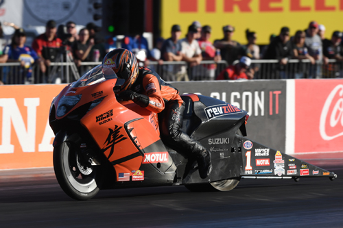 It has a chance to be a great weekend for the winningest driver in class history on Sunday, but Anderson will need to go four rounds for that to be the case. He'll start raceday against Chris McGaha, looking for his first win since April. More importantly, it's a chance to track down KB Titan Racing teammate and points leader Dallas Glenn, who will open raceday with a 48-point advantage over Aaron Stanfield and 84 points more than Anderson, who made up six points in qualifying. "We made three great runs before the last one so my race car in on point," Anderson said. "Tomorrow is going to be a hell of a battle. This late in the year the intensity is ratcheted up and by the end of the day, my season will either be alive or over. I like pressure. I live for these moments and I need four 20-point rounds tomorrow to stay in this. When I wake up, I hope I feel like an 18-year old kid and I hope I drive like one. "It's so much tougher to win now. There are 16 cars qualified and it wouldn't be a shock to see any of them win. Right now, [the competition] is the best it's ever been and it's great to be a part of it." David Cuadra secured the second spot with a run of 6.605 at 206.51 and Stanfield took third after a run of 6.609 at 205.66. Points leader Glenn qualified fifth.