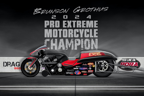 FREDERICKSBURG, Va. - Iowa's Brunson Grothus is an accomplished competitor in numerous motorcycle drag racing classes and organizations, but a world championship in the Red Line Oil PDRA Drag Racing Series eluded him until this season. Racing on two wheels in Drag 965 Pro Extreme Motorcycle, Grothus competed against past world champions to win three of the five races that included the class on the eight-race PDRA schedule. He's now just the fifth different Pro Extreme Motorcycle world champion in the 11-year history of the series. Grothus, who previously rode his family's nitrous-assisted Indocil Art/Grothus Drag Bikes Hayabusa, started the season riding Robert Varela's turbocharged Excel Glass Systems/Dallas Flat Glass Distributors Hayabusa. He lost in the first round at the season opener, then won the American Doorslammer Challenge at Summit Motorsports Park. Grothus qualified No. 1 for the second time in his career at the North vs. South Shootout at Maryland International Raceway. He qualified No. 1 and won the inaugural Thunder Valley Throwdown at Bristol Dragway, then repeated the sweep at the Brian Olson Memorial World Finals at Virginia Motorsports Park. He clinched the title when he defeated two-time and outgoing world champion Chris Garner-Jones in the semifinals.