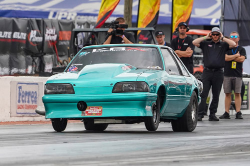 Lyle Barnett, who's competing in three classes this weekend, took the provisional No. 1 spot in Pro 275 behind the wheel of Tommy Youmans' ProCharged "Salvage Title" Mustang. He ran a 3.676 at 202.30, which is coincidentally the same E.T. he used to qualify No. 30 in Pro Mod. Nick Lacerenza qualified No. 2 with a 3.773 at 199.70 in his ProCharged '90 Mustang. Ocala, Florida's Chad Opaleski is third in his screw-blown '66 Chevelle with a 3.803 at 198.79.