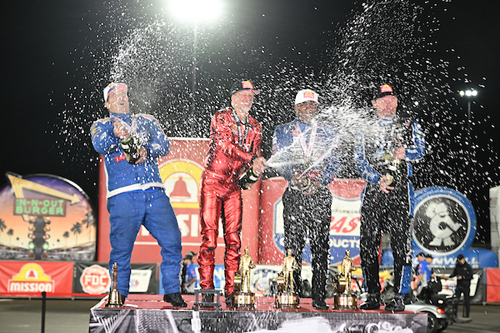 Pro Stock's Dallas Glenn won in Vegas, extending his lead to a commanding 92 points over teammate and reigning world champ Anderson. Glenn is after his first world title. Pro Stock Motorcycle teammates Richard Gadson and Gaige Herrera are separated by only 21 points, as points leader Gadson attempts to close out his first championship.