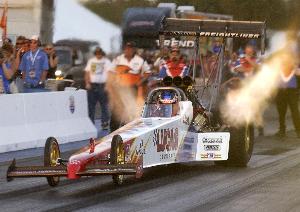 Despite such a trying start to the 2001 season, Bruce reached three finals in 2001 and won the IHRA World Finals at Shreveport, Louisiana. 2002 was all Clay Millican as Bruce recorded no wins despite appearing in nine final-rounds. Last season Bruce recorded two wins in six finals as Clay had another career year. Thus, Bruce’s career Top Fuel record stands at a respectable 30 final-round appearances and eight wins. Undaunted, Bruce looks ahead optimistically to the upcoming 2004 season. With a new car, new parts and Mike Wolfarth still by his side Bruce is prepared to give it his all once again. Part of his optimism comes from the never-ending support of his wife Carol, to whom he has been married for 26 years, and his daughter Heather. Bruce Litton is pleased to be able to enjoy what he does. He feels that, despite a few obstacles, he has been blessed in many ways. He is proud to be a Christian and sees his efforts as a chance to offer testimony in his own way. A lesser person might have quit rather than have to overcome even one of the challenges that Bruce has faced but he is grateful for them and looks for the greater good in everything that he does.
