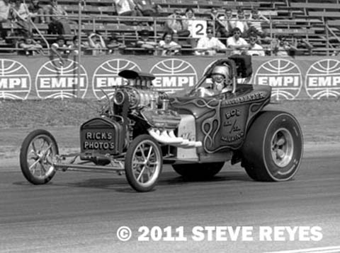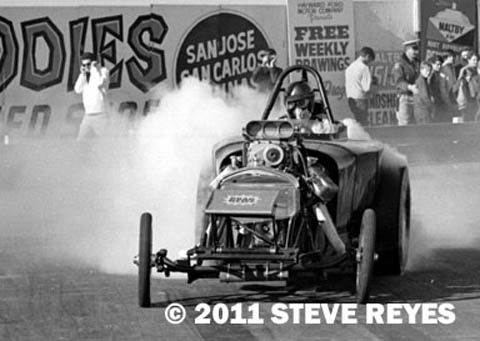 Comin' at Ya! Frank Pitts in Nick Otto's Warlock AA/FA. The Warlock was one of four Fuel Altereds based in Northern California.