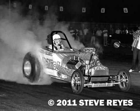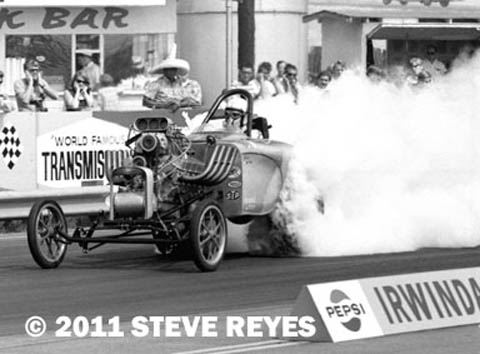 The late Gary Hazen drove Top Fuel and Funny Cars but his first love was the AA/FA class. Hazen's Panic AA/FA was a favorite of Southern California fans. Hazen and I did a huge smokey burnout in the pits at Irwindale for the cover of Popular Hot Rodding. The roadster dug two holes through the pavement on the burnout. Oh yeah, the track was closed that day for repaving, so we used the pits. I guess they could fill in those two holes with the left over pavement from the track.