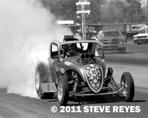 Yes, there was a nationwide tour of Fuel Altereds that hoped to get the drag fans interested in the class. But while the class remained strong in Southern California, it was still weak in most of the United States. Seeing that the money that the Funny Car and Top Fuel cars were securing, many of the Fuel Altered owners switched cars and classes and the fate of the Fuel Altereds was sealed. Without the show of Altereds at the Southern California tracks, the open altered shows vanished as well. Not all owners succumbed to the Funny Car temptation, some reinvented their cars by putting their Roadster, Bantam or Fiat bodies on a Funny Car chassis. However, for me and many other fans of this once mighty class it wasn't the same. If you still wish to relive those Fuel Altered memories, I have been helping the folks at ACME Diecast with their Fuel Altered line. They have some really cool diecast coming featuring The Super Rat Fiat, Twentieth Anniversary Rat Trap (CHRR Special), The Harrell and Borsch Winged Express, Pure Hell, Randy Bradford's Fiat, and Pure Heaven. For release dates and pricing go to www.acmediecast.com. If you wish to purchase prints of the photos below, they may be obtained by contacting us at blrenterprise@cox.net. Other photos may be viewed by following the link at the bottom of the page at www.reyesontour.com.