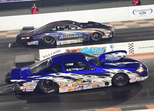 Saturday's rain-out was a letdown for everyone but No. 7 Elijah Morton, who suffered engine damage during Friday qualifying. The full day of downtime between qualifying and eliminations allowed Morton's crew to drive to their engine builder's shop in Tennessee, fetch a fresh batch of parts and return to GALOT Motorsports Park to make the repairs. Morton went on to beat No. 8 qualifier Chris Powers on a holeshot, running a 4.04 at 177.56 over Powers's 4.033 at 177.56 in an unlikely final round. "My daughter told me you couldn't start No. 1 if you want a Cinderella story, so we had to start from the bottom and work our way up. I guess this is our little Cinderella story this weekend," Morton said. "My guys here from Allen Competition Engines drove back to Tennessee to get parts. They're just great guys. My crew just did a great job this weekend. Plus, this is my home track, so there's nothing better than coming out and winning in front of your friends and family." Morton left his troubles behind in qualifying, as he drove his Morton Brothers Motorsports '12 Mustang to a 4.056 at 177.09 over a red-lighting John Pluchino and a 4.055 at 177.44 to beat John DeFlorian's 4.129 at 172.23. On the other side of the ladder, Powers and his Liberty's Gears '14 Camaro raced past No. 1 qualifier Jeff Dobbins and J.R. Carr.