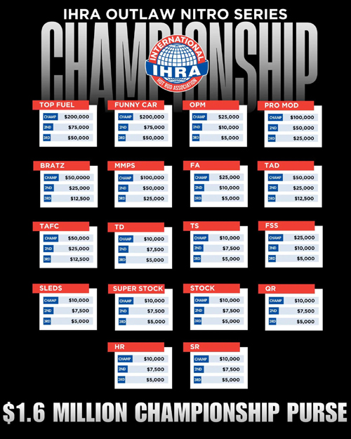 The IHRA has announced the 2026 Outlaw Nitro Series schedule including a season championship. IHRA also, announced the IHRA Triple Crown, features three standalone events.