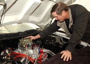 Charles Lackey adjust the carburetor.