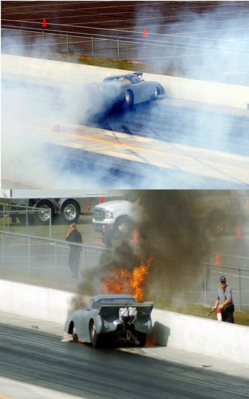 Tim Krupa's first burnout in his brand-new '53 Chevy Pro Mod ended with a blown engine, followed