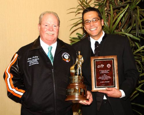 Motorcycle champ Greg Liskey and his crew chief Kahea Woods.