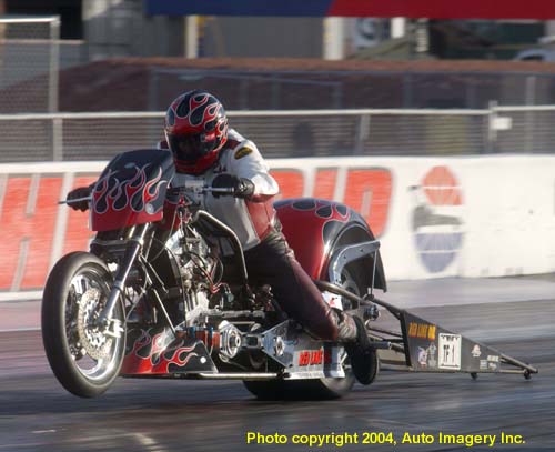 Canadian Ron Houniet laid down some passes in the 6.50's with his Top Fuel Harley.